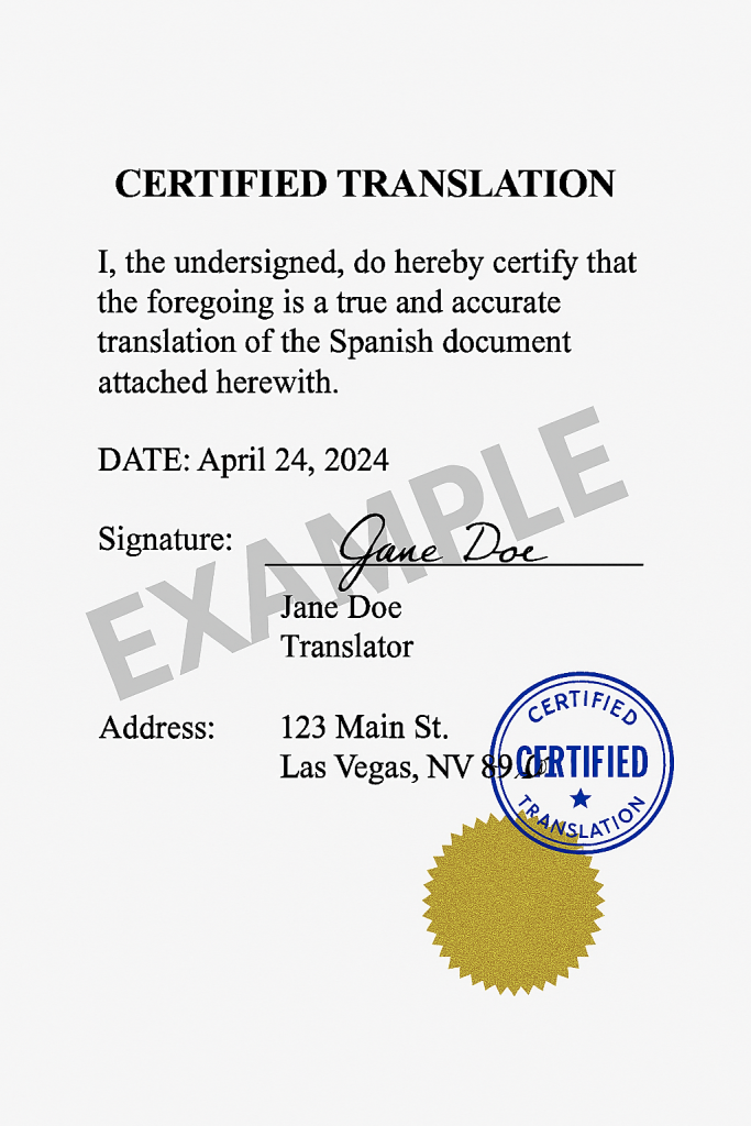 I am not a robot or AI — I personally translate each document with care, precision, and full compliance with USCIS and Nevada DMV standards.